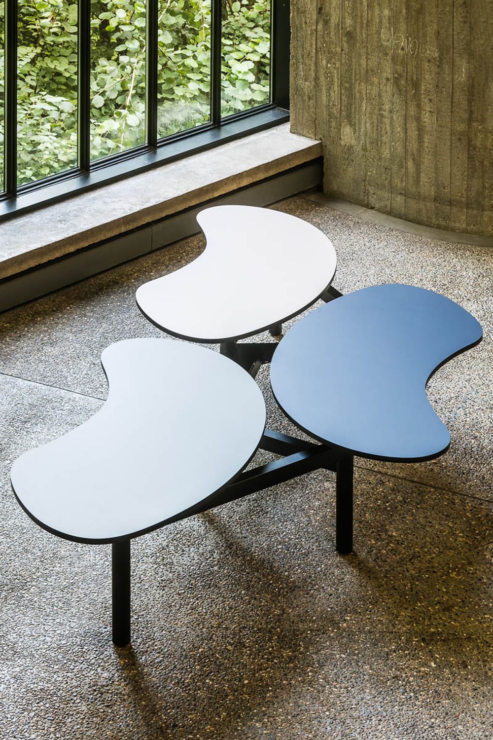 Son plateau multifonctionnel en bois cintré répond aux besoins des mondes Office et Habitat.