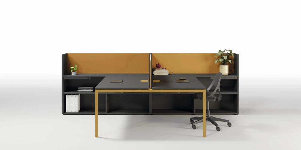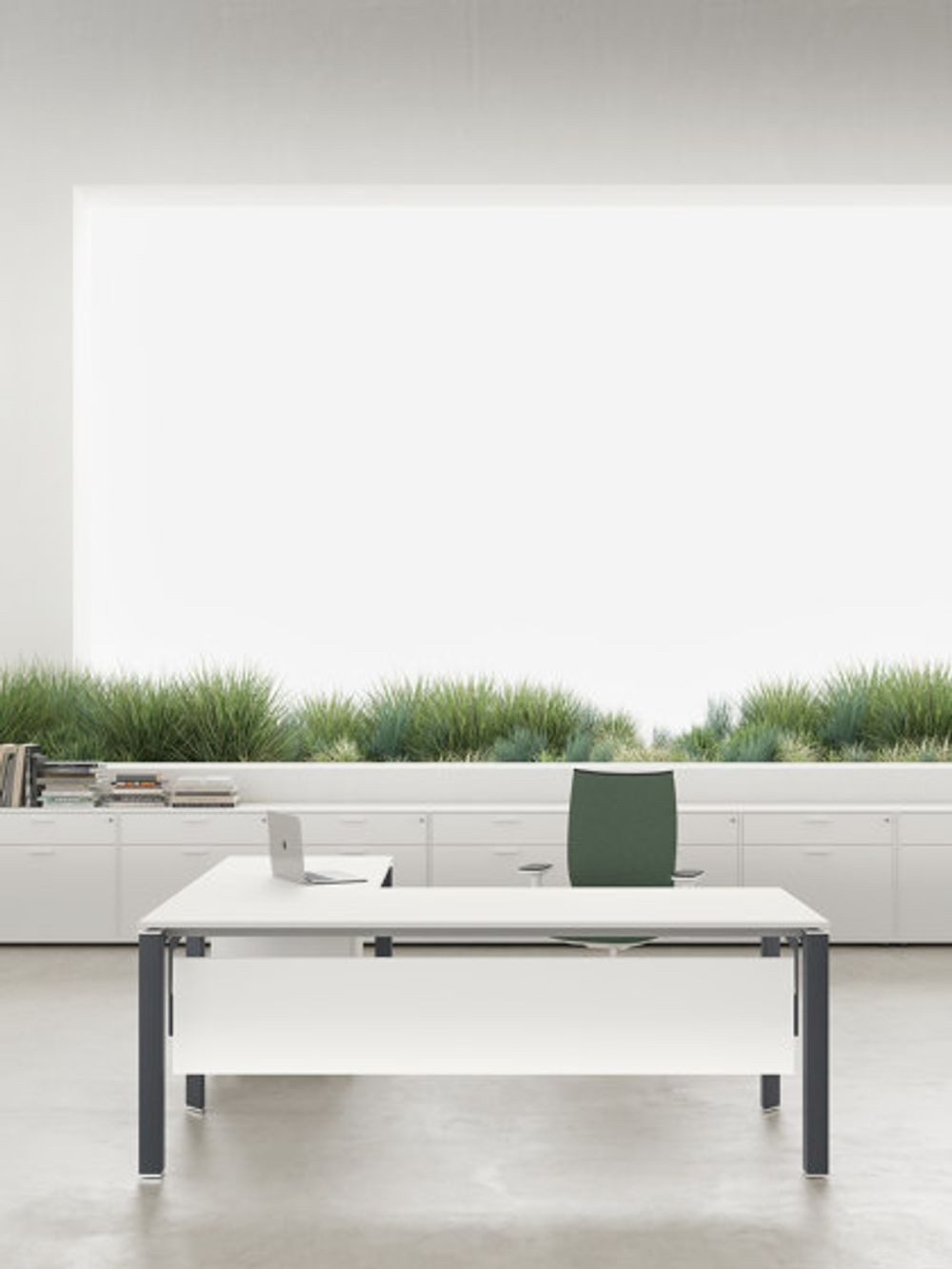 La fonctionnalité et l’esthétique garantissent des postes de travail multiples réalisés avec des matériaux techniques d’avant-garde tels que les écrans frontaux en PET qui garantissent l’absorption acoustique dans l’environnement