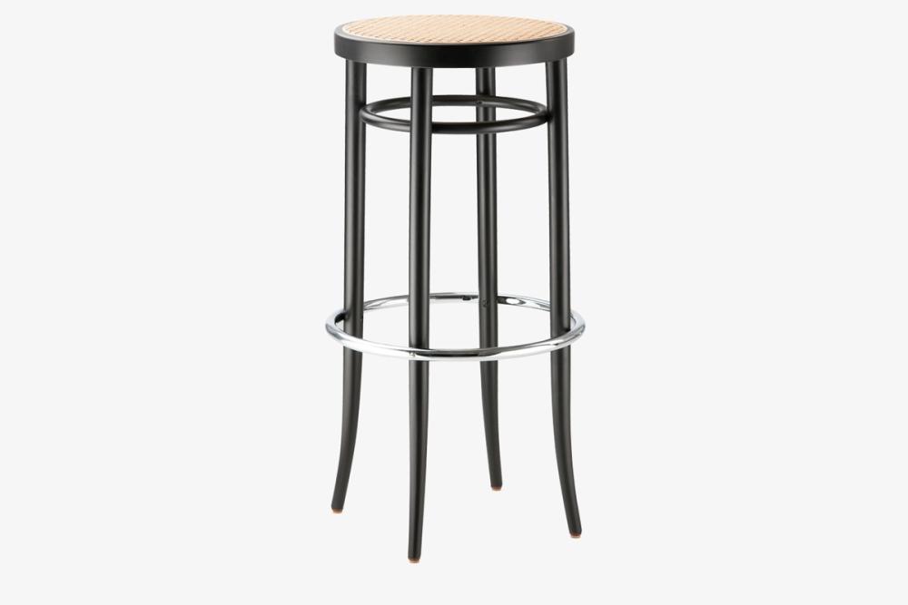 Dans ce tabouret de bar classique, le bois courbé rencontre l’acier tubulaire.