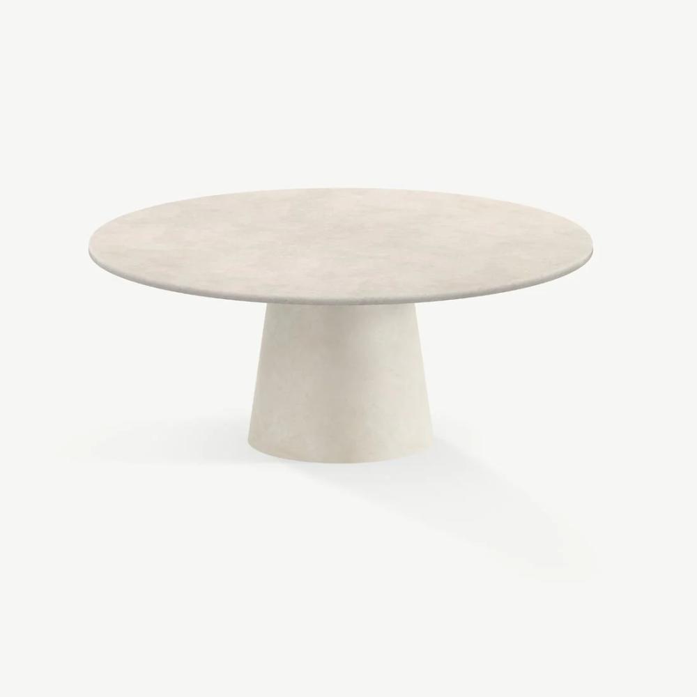 Belle harmonie : l’élégante table Elza avec base conique et plateau rond mortex.